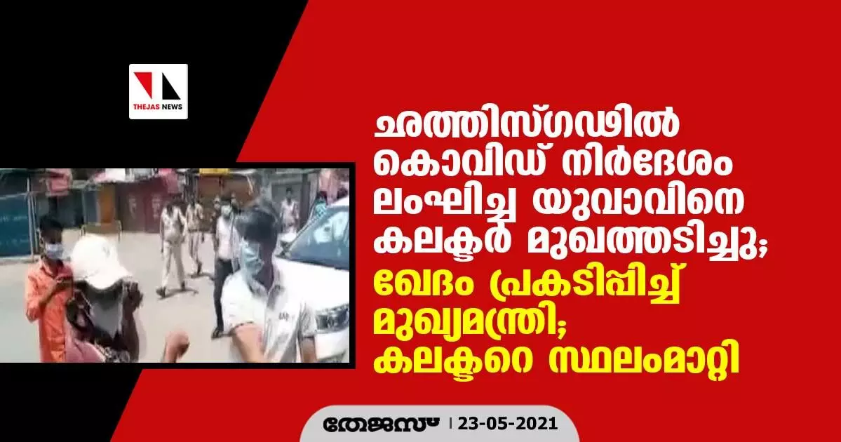 ഛത്തിസ്ഗഢില് കൊവിഡ് നിര്ദേശം ലംഘിച്ച യുവാവിനെ കലക്ടര് മുഖത്തടിച്ചു; ഖേദം പ്രകടിപ്പിച്ച് മുഖ്യമന്ത്രി; കലക്ടറെ സ്ഥലംമാറ്റി
