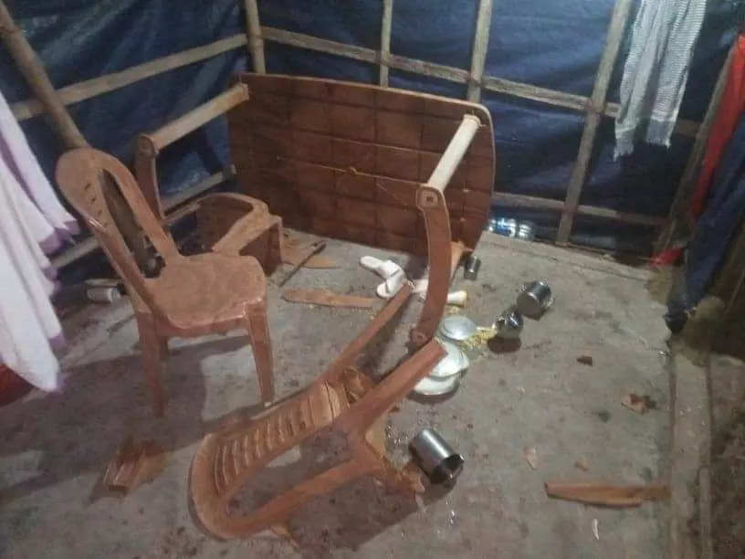 വീടിന്റെ വാതില് തകര്ത്തനിലയിലാണ്. കസേരകളും മേശയും തകര്ത്തിട്ടുണ്ട്.