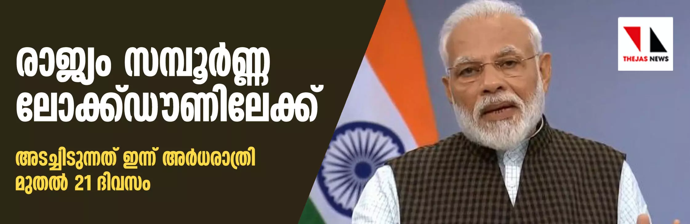 കൊറോണ വ്യാപനം തടയാന് രാജ്യം പൂര്ണമായും അടച്ചിടുമെന്ന് പ്രധാനമന്ത്രി
