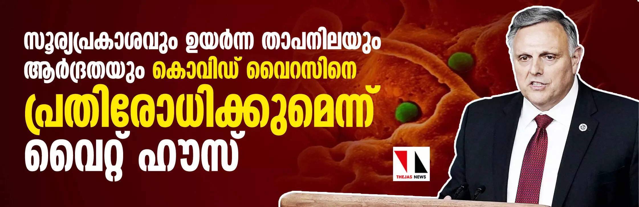 സൂര്യപ്രകാശവും ഉയര്ന്ന താപനിലയും ആര്ദ്രതയും കൊവിഡ് വൈറസിനെ പ്രതിരോധിക്കുമെന്ന് വൈറ്റ് ഹൗസ്