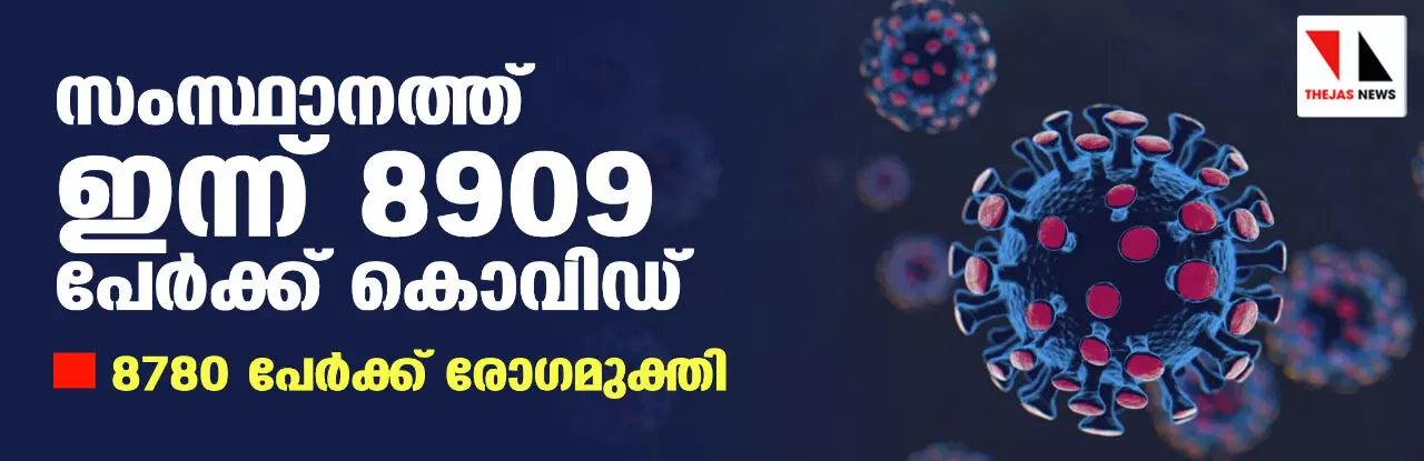തിരുവനന്തപുരം: കേരളത്തില് ശനിയാഴ്ച 8909 പേര്ക്ക് കൊവിഡ്19 സ്ഥിരീകരിച്ചു. എറണാകുളം 1,233, തിരുവനന്തപുരം 1,221, തൃശൂര് 1,105, കോഴിക്കോട് 914, കൊല്ലം 649, ഇടുക്കി 592, കോട്ടയം 592, പത്തനംതിട്ട 544, മലപ്പുറം 436, കണ്ണൂര് 410, പാലക്കാട് 397, ആലപ്പുഴ 388, വയനാട് 270, കാസര്കോഡ് 158 എന്നിങ്ങനേയാണ് ജില്ലകളില് ഇന്ന് രോഗ ബാധ സ്ഥിരീകരിച്ചത്.