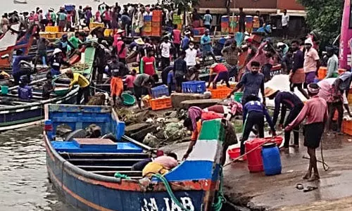കൊവിഡ് പ്രതിരോധ നടപടികള്ക്ക് പുല്ലുവില; പടിഞ്ഞാറേക്കര അഴിമുഖത്ത് എത്തുന്നത് ആയിരക്കണക്കിന് മത്സ്യത്തൊഴിലാളികള്