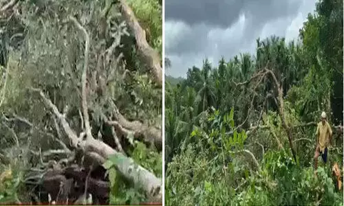 ഇന്ന് പുലര്ച്ചെയാണ് മാന്യയിലെ പട്ടാജെ, മല്ലടുക്ക എന്നിവിടങ്ങളില് മിന്നല് ചുഴലി ഉണ്ടായത്. പ്രദേശത്ത് രാത്രി ശക്തമായ കാറ്റും മഴയും അനുഭവപ്പെട്ടിരുന്നു. ഇതിന് പിന്നാലെയാണ് മിന്നല് ചുഴലി ഉണ്ടായത്. പല വീടുകള്ക്ക് മുകളില് സ്ഥാപിച്ച ഷീറ്റുകള് കാറ്റില് പറന്നു പോയി.വാഴ കൃഷികളും കവുങ്ങുകളും കാറ്റില് നിലംപൊത്തി.ലക്ഷക്കണക്കിന് രൂപയുടെ നാശനഷ്ടങ്ങള് ഉണ്ടായതായി പ്രദേശവാസികള് പറയുന്നു.