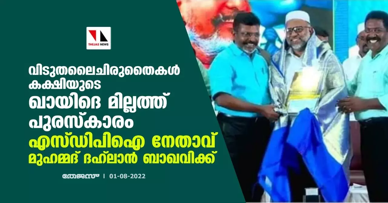 വിടുതലൈ ചിരുതൈകള് കക്ഷിയുടെ ഖായിദെ മില്ലത്ത് പുരസ്കാരം എസ്ഡിപിഐ നേതാവ് മുഹമ്മദ് ദഹ്ലാന് ബാഖവിക്ക്