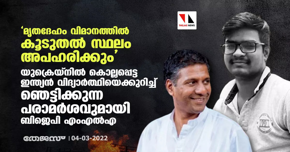 'മൃതദേഹം വിമാനത്തില് കൂടുതല് സ്ഥലം അപഹരിക്കും'; യുക്രെയ്നില് കൊല്ലപ്പെട്ട ഇന്ത്യന് വിദ്യാര്ത്ഥിയെക്കുറിച്ച് ഞെട്ടിക്കുന്ന പരാമര്ശവുമായി ബിജെപി എംഎല്എ