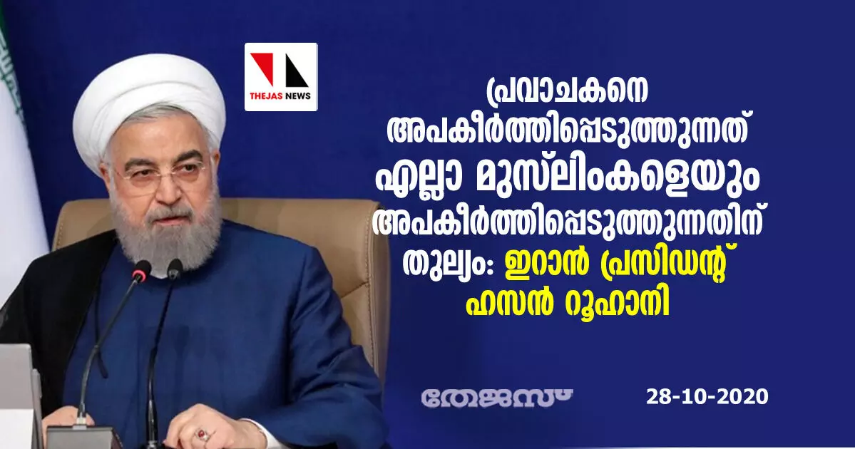 പ്രവാചകനെ അപകീര്ത്തിപ്പെടുത്തുന്നത് എല്ലാ മുസ്ലിംകളെയും അപകീര്ത്തിപ്പെടുത്തുന്നതിന് തുല്യം: ഇറാന് പ്രസിഡന്റ് ഹസന് റൂഹാനി