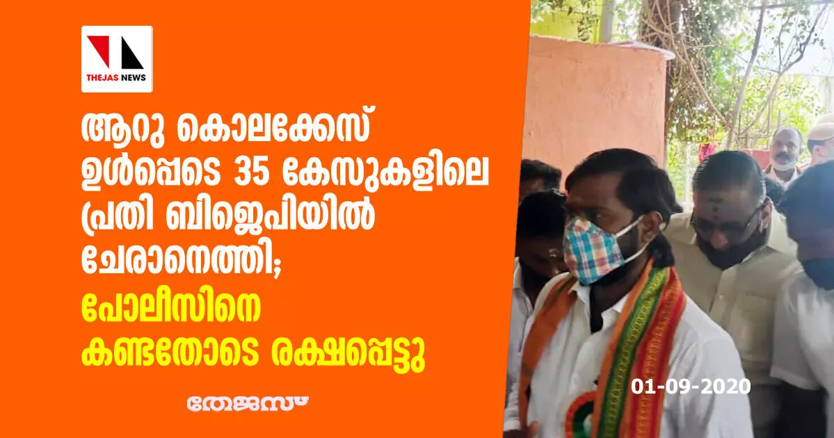 ആറു കൊലക്കേസ് ഉള്പ്പടെ 35 കേസുകളിലെ പ്രതി ബിജെപിയില് ചേരാനെത്തി: പോലീസിനെ കണ്ടതോടെ രക്ഷപ്പെട്ടു