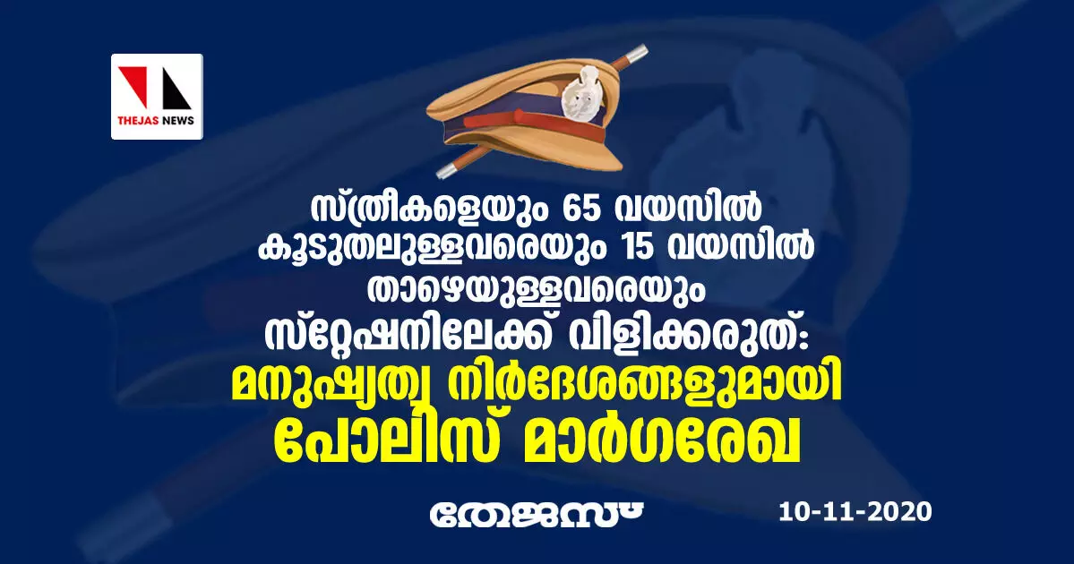 സ്ത്രീകളെയും 65 വയസില് കൂടുതലുള്ളവരെയും 15 വയസില് താഴെയുള്ളവരെയും സ്റ്റേഷനിലേക്ക് വിളിക്കരുത്: മനുഷ്യത്വ നിര്ദേശങ്ങളുമായി പോലിസ് മാര്ഗ്ഗരേഖ