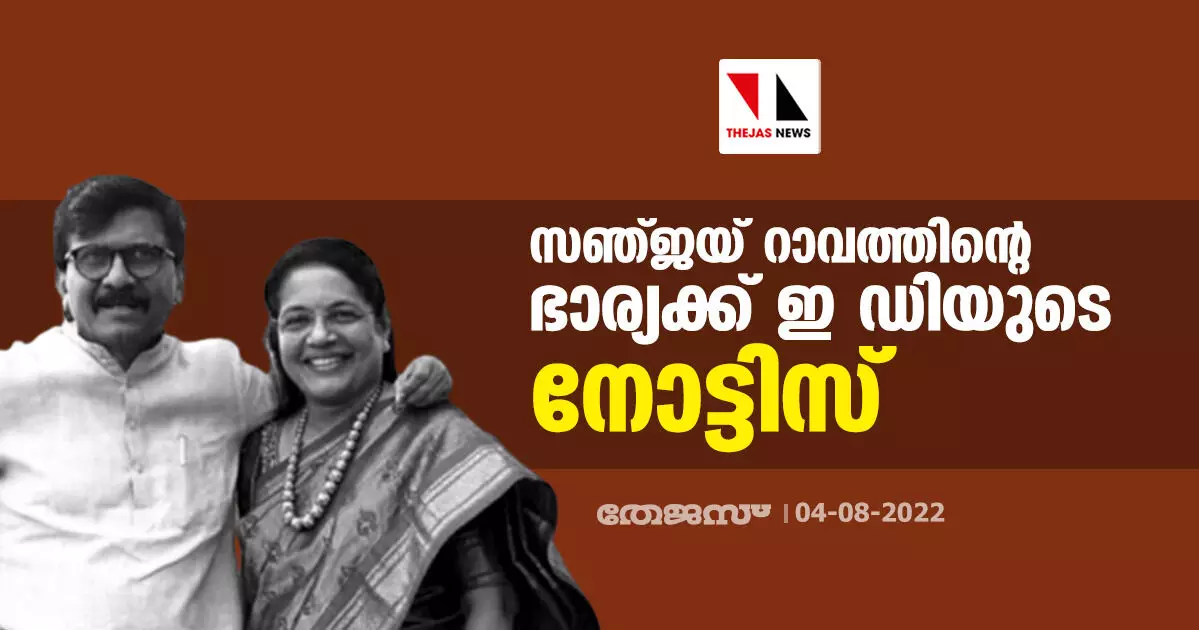 മുംബൈ: ഭൂമി ഇടപാടിലൂടെ കള്ളപ്പണം വെളിപ്പിച്ചെന്ന ആരോപണത്തില് ശിവസേന നേതാവ് സഞ്ജയ് റാവത്തിന്റെ ഭാര്യയ്ക്ക് എന്ഫോഴ്സ്മെന്റ് നോട്ടിസ്. സഞ്ജയ് റാവത്തിന്റെ കസ്റ്റഡി ആഗസ്റ്റ് 8വരെ നീട്ടിനല്കിയതിനു പിന്നാലെയാണ് ഭാര്യ വര്ഷ റാവത്തിനെയും ഇ ഡി ചോദ്യം ചെയ്യാന് വിളിപ്പിക്കുന്നത്. സഞ്ജയ് റാവത്തിന്റെ പല കേസുകളിലും ഭാര്യ വര്ഷയുടെ കേസ് പരാമര്ശിച്ചിട്ടുണ്ടെങ്കിലും ഇതാദ്യമാണ് അവരെ ചോദ്യം ചെയ്യാന് വിളിപ്പിക്കുന്നത്.
