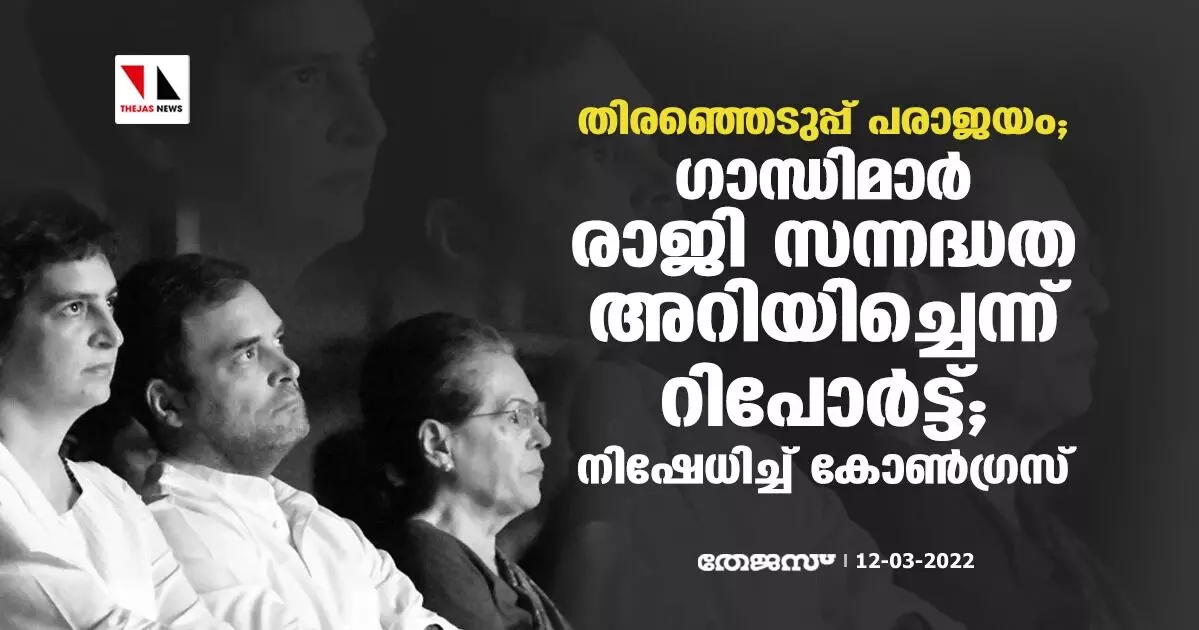 തിരഞ്ഞെടുപ്പ് പരാജയം; ഗാന്ധിമാര് രാജിസന്നദ്ധത അറിയിച്ചെന്ന് റിപോര്ട്ട്; നിഷേധിച്ച് കോണ്ഗ്രസ്