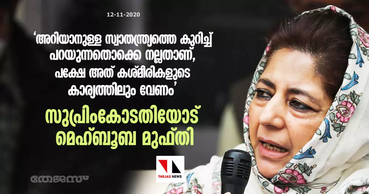 'അറിയാനുള്ള സ്വാതന്ത്ര്യത്തെ കുറിച്ച് പറയുന്നതൊക്കെ നല്ലതാണ്, പക്ഷേ അത് കശ്മീരികളുടെ കാര്യത്തിലും വേണം' : സുപ്രിംകോടതിയോട് മെഹ്ബൂബ മുഫ്തി