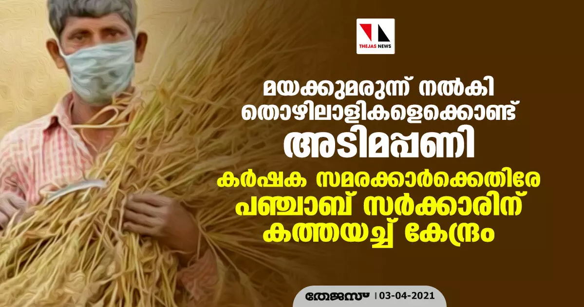 മയക്കുമരുന്ന് നല്കി തൊഴിലാളികളെക്കൊണ്ട് അടിമപ്പണി; കര്ഷക സമരക്കാര്ക്കെതിരേ പഞ്ചാബ് സര്ക്കാരിന് കത്തയച്ച് കേന്ദ്രം