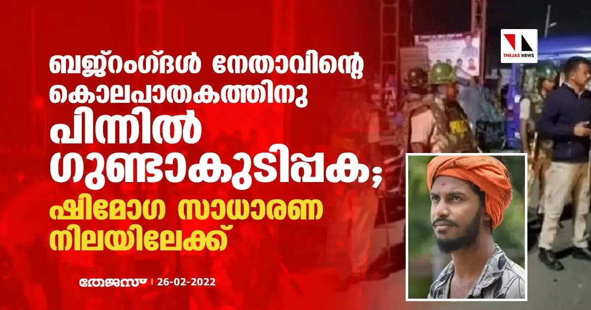 ബജ്റംഗ്ദള് നേതാവിന്റെ കൊലപാതകത്തിനു പിന്നില് ഗുണ്ടാകുടിപ്പക; ഷിമോഗ സാധാരണ നിലയിലേക്ക്