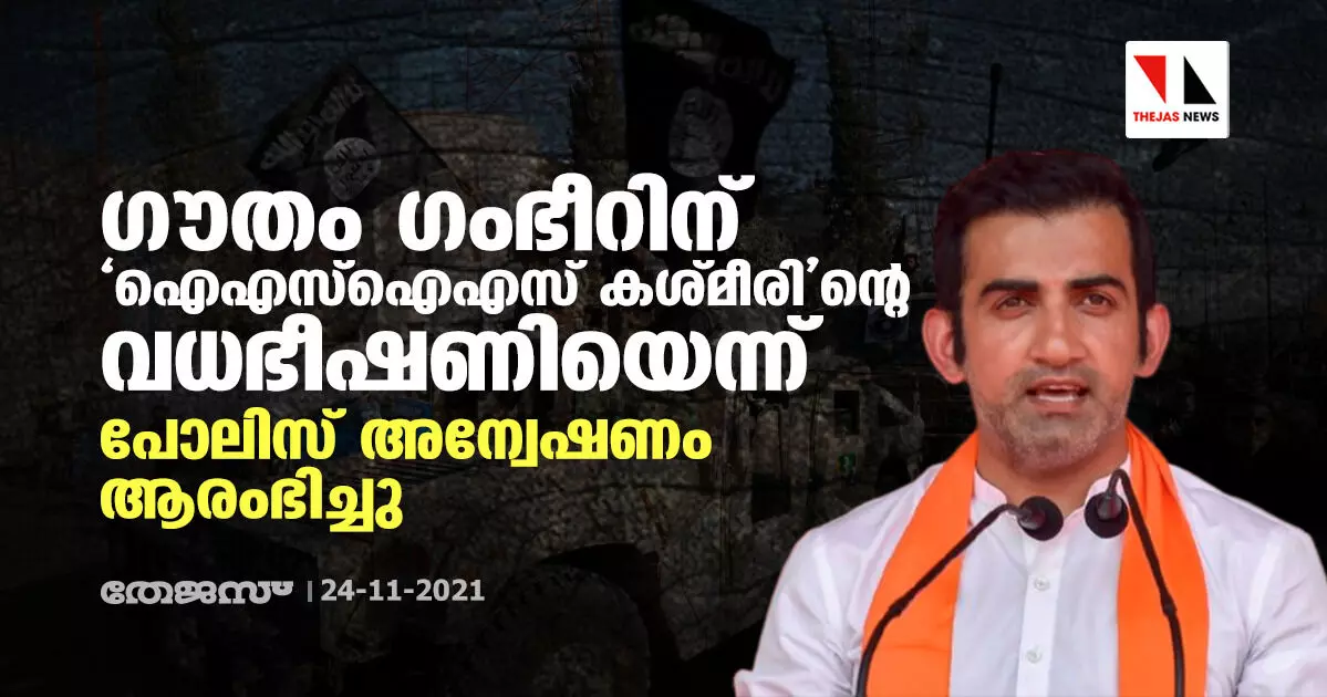 ഗൗതം ഗംഭീറിന് 'ഐഎസ്ഐഎസ് കശ്മീരി'ന്റെ വധഭീഷണിയെന്ന്: പോലിസ് അന്വേഷണം ആരംഭിച്ചു