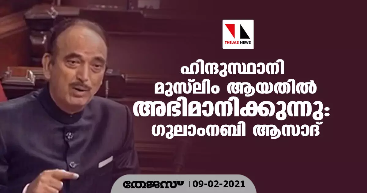 ന്യൂഡല്ഹി : ഒരു ഹിന്ദുസ്ഥാനി മുസ്ലിം ആയതില് അഭിമാനിക്കുന്നുവെന്ന് മുതിര്ന്ന കോണ്ഗ്രസ് നേതാവും പ്രതിപക്ഷ നേതാവുമായ ഗുലാംനബി ആസാദ്. രാജ്യസഭയില് തനിക്കു ലഭിച്ച യാത്രയയപ്പില് മറുപടി പ്രസംഗത്തിനിടെയായിരുന്നു ഗുലാം നബി ആസാദ് ഇക്കാര്യം പറഞ്ഞത്. 'പാകിസ്താനില് പോകാത്ത ഭാഗ്യവാന്മാരില് ഒരാളാണ് ഞാന്. പാകിസ്താനിലെ നിലവിലെ സാഹചര്യങ്ങളെ കുറിച്ച് വായിക്കുമ്പോള് ഒരു ഹിന്ദുസ്ഥാനി മുസ്ലിം ആയതില് ഞാനഭിമാനിക്കുന്നു' അദ്ദേഹം പറഞ്ഞു.
