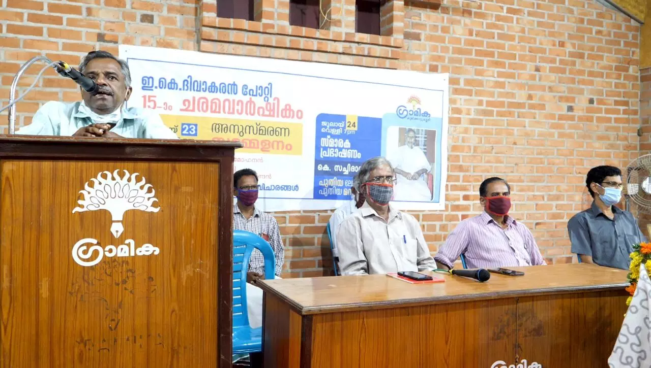 വിവര്ത്തകനും സ്വാതന്ത്ര്യ സമര സേനാനിയുമായിരുന്ന ഇ കെ ദിവാകരന് പോറ്റിയുടെ 15ാം ചരമവാര്ഷികത്തില് കുഴിക്കാട്ടുശ്ശേരി ഗ്രാമിക സംഘടിപ്പിച്ച അനുസ്മരണ പരിപാടിയില് സ്മാരക പ്രഭാഷണം നടത്തുകയായിരുന്നു സച്ചിദാനന്ദന്. പുതിയ ലോകം പുതിയ മനുഷ്യന് എന്ന വിഷയത്തില് ഗ്രാമിക ഫേസ്ബുക്ക് പേജിലൂടെയാണ് തത്സമയ പ്രഭാഷണം നടന്നത്. പാര്ശ്വവല്ക്കരിക്കപ്പെട്ട ജനങ്ങളുടെ ദുരിതങ്ങള് കൂടുതല് ദൃശ്യമാക്കപ്പെട്ടു. പൊതുജനാരോഗ്യ വ്യവസ്ഥയും പൊതുവിതരണ ശൃംഖലയും ശക്തമാക്കേണ്ടതിന്റെ ആവശ്യം കൂടുതല് ബോധ്യപ്പെടുത്തുകയും പ്രകൃതിയോട് കൂടുതല് വിനയാന്വിതരാകേണ്ടതിന്റെ പ്രാധാന്യം കാട്ടിത്തരുകയും ചെയ്തു. വീണു കിട്ടിയ ഈ ഒഴിവുസമയം കൂടുതല് ഒരുമ പുലര്ത്താനും കരുണ കാണിക്കാനും സര്വ്വ ജീവജാലങ്ങള്ക്കും അവകാശപ്പെട്ടതാണീ ലോകമെന്ന ബോധ്യത്തിലേക്കെത്താനും ഉപയോഗിക്കണമെന്നും അദ്ദേഹം പറഞ്ഞു.