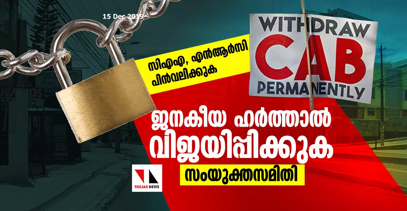 സിഎഎ, എന്ആര്സി പിന്വലിക്കുക: ജനകീയ ഹര്ത്താല് വിജയിപ്പിക്കുക - സംയുക്ത സമിതി