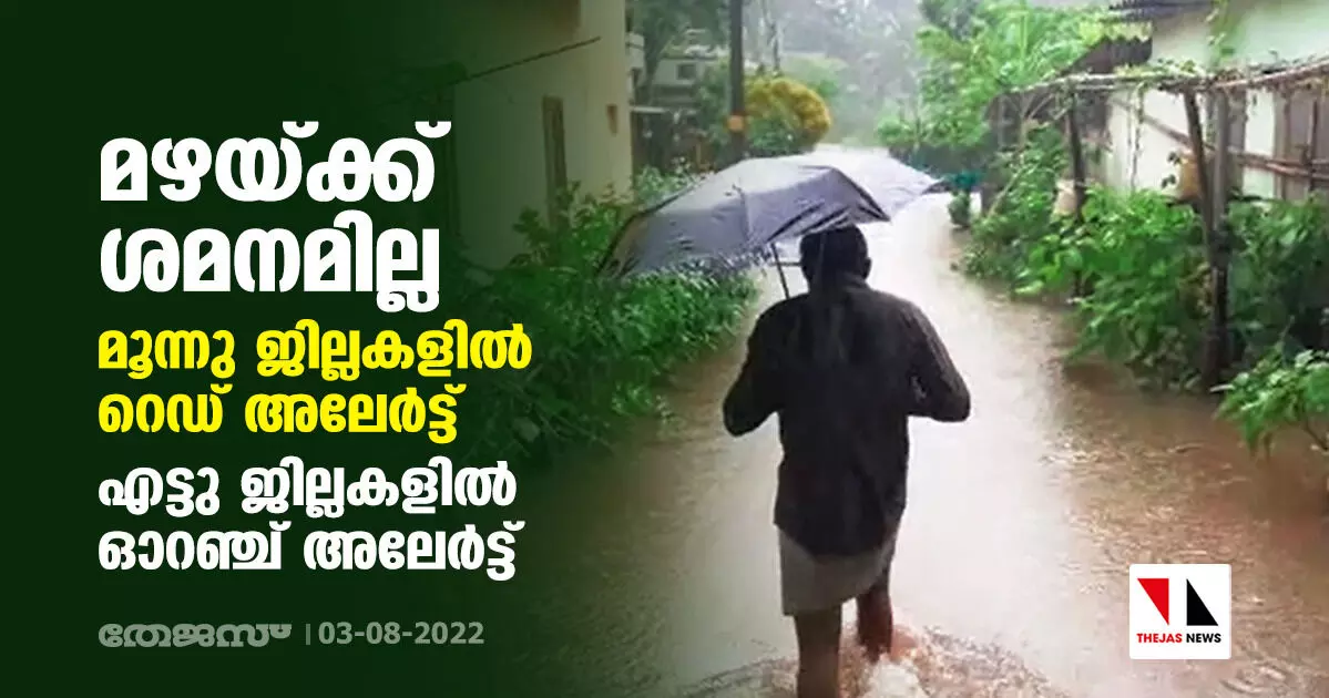 മഴയ്ക്ക് ശമനമില്ല, മൂന്നു ജില്ലകളില് റെഡ് അലേര്ട്ട്; എട്ടു ജില്ലകളില് ഓറഞ്ച് അലേര്ട്ട്