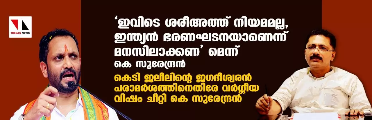 'ഇവിടെ ശരീഅത്ത് നിയമമല്ല, ഇന്ത്യന് ഭരണഘടനയാണെന്ന് മനസിലാക്കണ' മെന്ന് കെ സുരേന്ദ്രന്