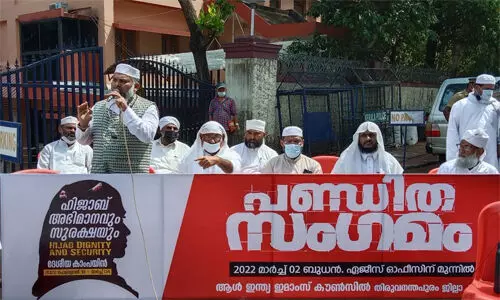 ഹിജാബ് അഭിമാനവും സുരക്ഷയും: ഏജീസ് ഓഫിസിന് മുന്പില് ആള് ഇന്ത്യ ഇമാംസ് കൗണ്സില് പണ്ഡിത സംഗമം നടത്തി