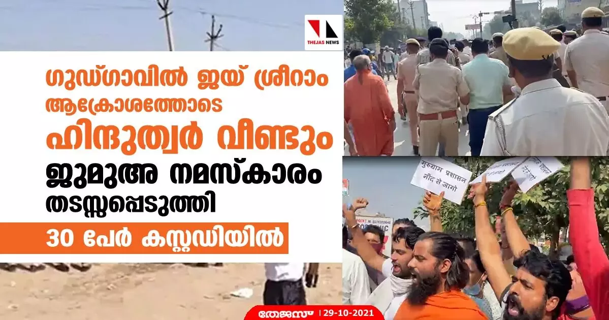 ഗുഡ്ഗാവില് ജയ് ശ്രീറാം ആക്രോശത്തോടെ ഹിന്ദുത്വര് വീണ്ടും ജുമുഅ നമസ്കാരം തടസ്സപ്പെടുത്തി; 30 പേര് കസ്റ്റഡിയില്