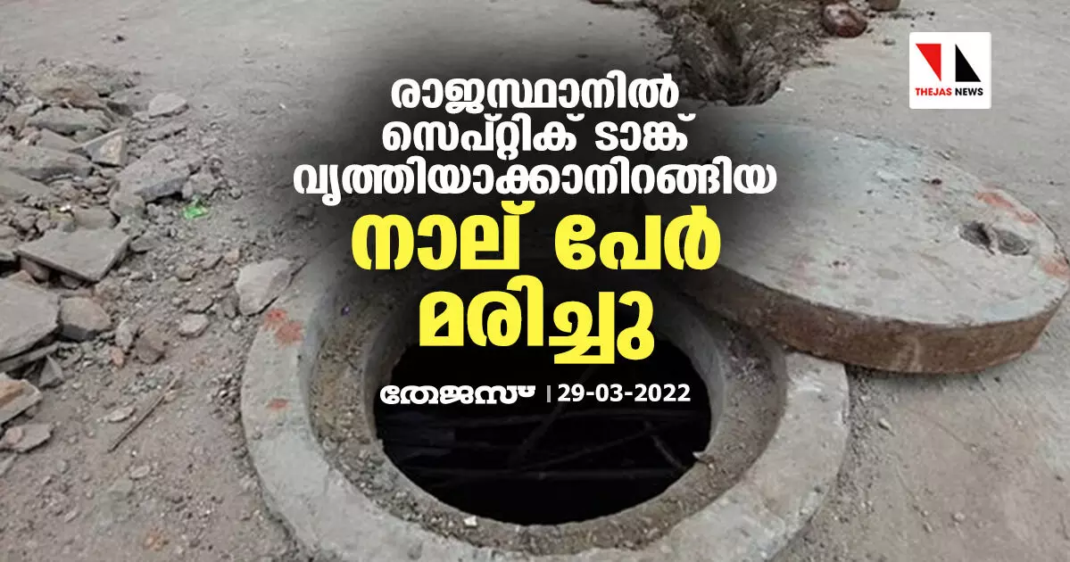 ബിക്കാനീര്; രാജസ്ഥാനിലെ ബിക്കാനീര് ജില്ലയിലെ ഒരു ഫാക്ടറിയിലെ സെപ്റ്റിക് ടാങ്ക് വൃത്തിയാക്കുന്നതിനിടെ വിഷവാതകം ശ്വസിച്ച് നാല് തൊഴിലാളികള് മരിച്ചു. ഞായറാഴ്ച ബീച്ച്വാള് പോലിസ് സ്റ്റേഷന് പരിധിയിലെ കര്ണി ഇന്ഡസ്ട്രിയല് ഏരിയയിലാണ് സംഭവം.