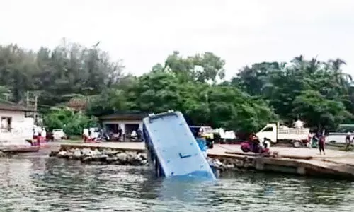 താനൂരില്നിന്ന് അഴിമുഖത്തേക്ക് യാത്രതിരിച്ച ബസ്സാണ് അപകടത്തില്പെട്ടത്. അപകടം നടക്കുമ്പോള് മല്സ്യത്തൊഴിലാളികള് ബസിലുണ്ടായിരുന്നില്ല. അവരെ ഇറക്കി പിറകിലേക്ക് നീക്കിയിടുമ്പോഴാണ് പുഴയിലേക്ക് മറിഞ്ഞത്.