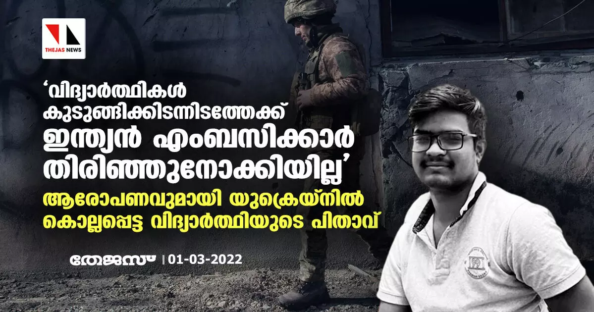 'വിദ്യാര്ത്ഥികള് കുടുങ്ങിക്കിടന്നിടത്തേക്ക് ഇന്ത്യന് എംബസിക്കാര് തിരിഞ്ഞുനോക്കിയില്ല'; ആരോപണവുമായി യുക്രെയ്നില് കൊല്ലപ്പെട്ട വിദ്യാര്ത്ഥിയുടെ പിതാവ്