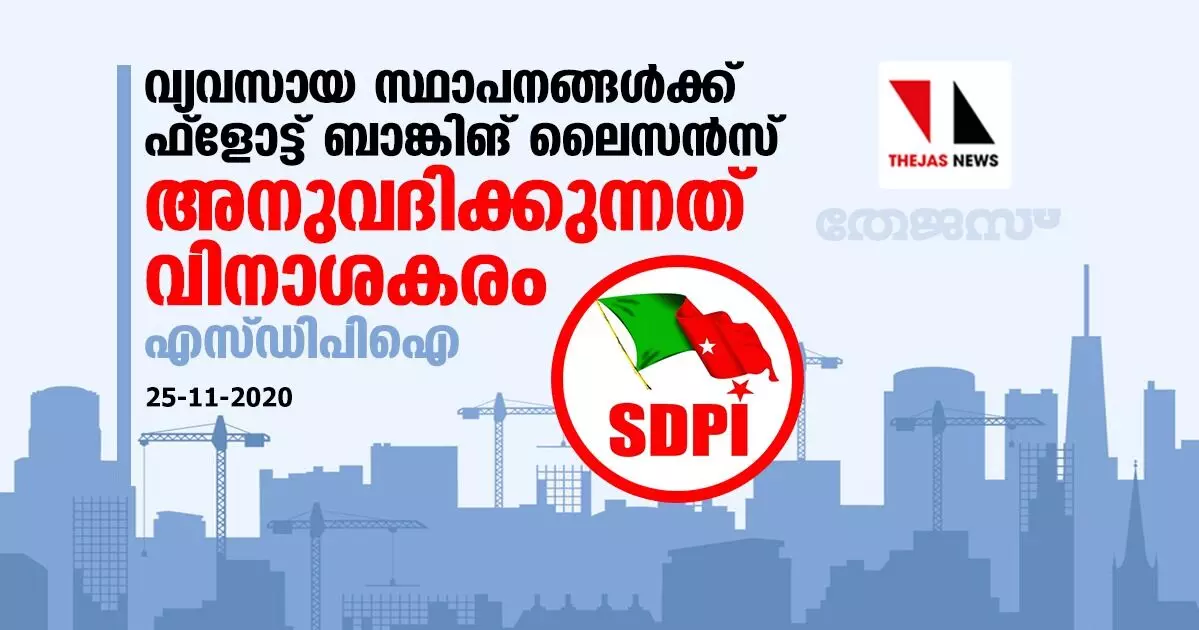 വ്യവസായ സ്ഥാപനങ്ങള്ക്ക് ഫ്ളോട്ട് ബാങ്കിങ് ലൈസന്സ് അനുവദിക്കുന്നത് വിനാശകരം: എസ്.ഡി.പി.ഐ