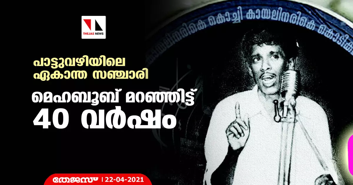 കോഴിക്കോട്: സംഗീതത്തിന്റെ ആരോഹണാവരോഹണങ്ങള് പോലെ ജീവിതത്തെയും ഉയര്ച്ച താഴ്ച്ചകളിലൂടെ പാടിത്തീര്ത്ത കൊച്ചിയുടെ സ്വന്തം ഗായകന് മെഹബൂബ് ഓര്മയായിട്ട് 40 വര്ഷം തികയുന്നു. കൈവന്ന അവസരങ്ങള് പോലും മറ്റുള്ളവര്ക്ക് വെച്ചുനീട്ടിയ മെഹബൂബ് അവസാന കാലങ്ങളില് കടുത്ത ദാരിദ്ര്യത്തിലായിരുന്നു കഴിഞ്ഞുകൂടിയത്. ഒരുകാലത്ത് മലയാളത്തിലെ ഏറ്റവും ജനപ്രിയനായ ഗായകനായിരുന്ന മെഹബൂബ് 1981 ഏപ്രില് 22ന് മരണപ്പെട്ടത് തീര്ത്തും ദരിദ്രനായിട്ടായിരുന്നു.