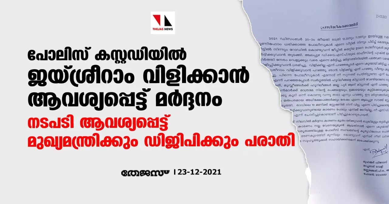 പോലിസ് കസ്റ്റഡിയില് 'ജയ് ശ്രീറാം' വിളിക്കാന് ആവശ്യപ്പെട്ട് മര്ദ്ദനം; നടപടി ആവശ്യപ്പെട്ട് മുഖ്യമന്ത്രിക്കും ഡിജിപിക്കും പരാതി