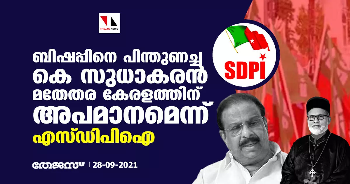 ബിഷപ്പിനെ പിന്തുണച്ച കെ സുധാകരന് മതേതര കേരളത്തിന് അപമാനമെന്ന് എസ്ഡിപിഐ