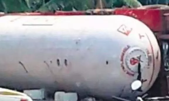 വാതക ചോര്ച്ച ഇല്ല. പ്രദേശത്തെ ആളുകള്ക്ക് ജാഗ്രത നിര്ദേശം നല്കിയിട്ടുണ്ട്. മംഗളൂരുവില് നിന്നുള്ള വിദഗ്ധ സംഘമെത്തി ടാങ്കര് നീക്കം ചെയ്യും. കാഞ്ഞങ്ങാട്, തൃക്കരിപ്പൂര് എന്നിവിടങ്ങളില് നിന്നുള്ള ഫയര്ഫോഴ്സും പൊലീസും സ്ഥലത്തെത്തിയിട്ടുണ്ട്