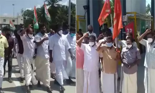 എം വിന്സെന്റ് എംഎല്എയുടെ നേതൃത്വത്തിലാണ് കോണ്ഗ്രസ് പ്രതിഷേധം. കഴിഞ്ഞ ആഴ്ചയും ഇവിടെ ശക്തമായ ജനകീയ പ്രതിഷേധം നടത്തിയിരുന്നു. അന്നത്തെ പ്രതിഷേധത്തിന്റെ പശ്ചാത്തലത്തില് സര്വകക്ഷിയോഗം വിളിച്ച് ധാരണ ആയ ശേഷമേ ടോള് പിരിവ് തുടങ്ങൂ എന്നാണ് അന്ന് ദേശീയപാത വിഭാഗം ഉദ്യോഗസ്ഥര് ഉറപ്പു നല്കിയത്. എന്നാല് ഇന്ന് രാവിലെയോടെ വീണ്ടും ടോള് പിരിവ് ആരംഭിക്കുകയായിരുന്നു. ഇതോടെയാണ് യുഡിഎഫ്-സിപിഎം പ്രവര്ത്തകര് പ്രതിഷേധവുമായി രംഗത്തെത്തിയത്.