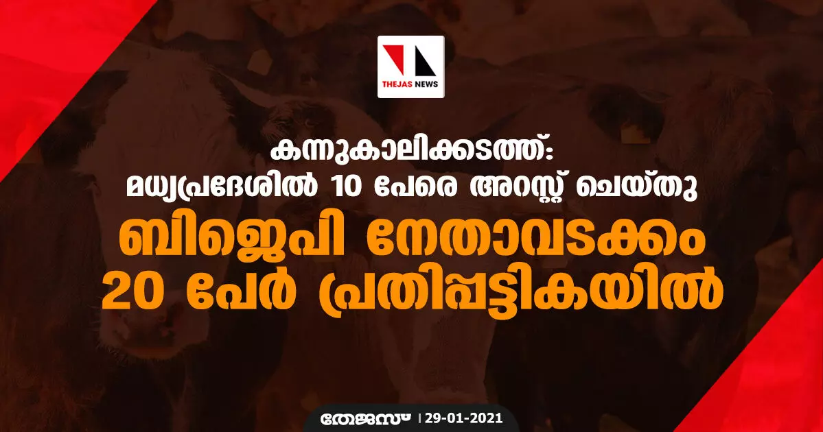 കന്നുകാലിക്കടത്ത്: മധ്യപ്രദേശില് 10 പേരെ അറസ്റ്റ് ചെയ്തു; ബിജെപി നേതാവടക്കം 20 പേര് പ്രതിപ്പട്ടികയില്