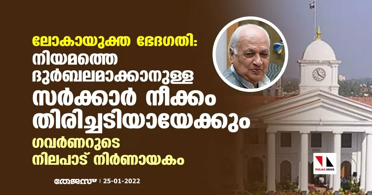 ലോകായുക്ത ഭേദഗതി: നിയമത്തെ ദുര്ബലമാക്കാനുള്ള സര്ക്കാര് നീക്കം തിരിച്ചടിയായേക്കും; ഗവര്ണറുടെ നിലപാട് നിര്ണായകം