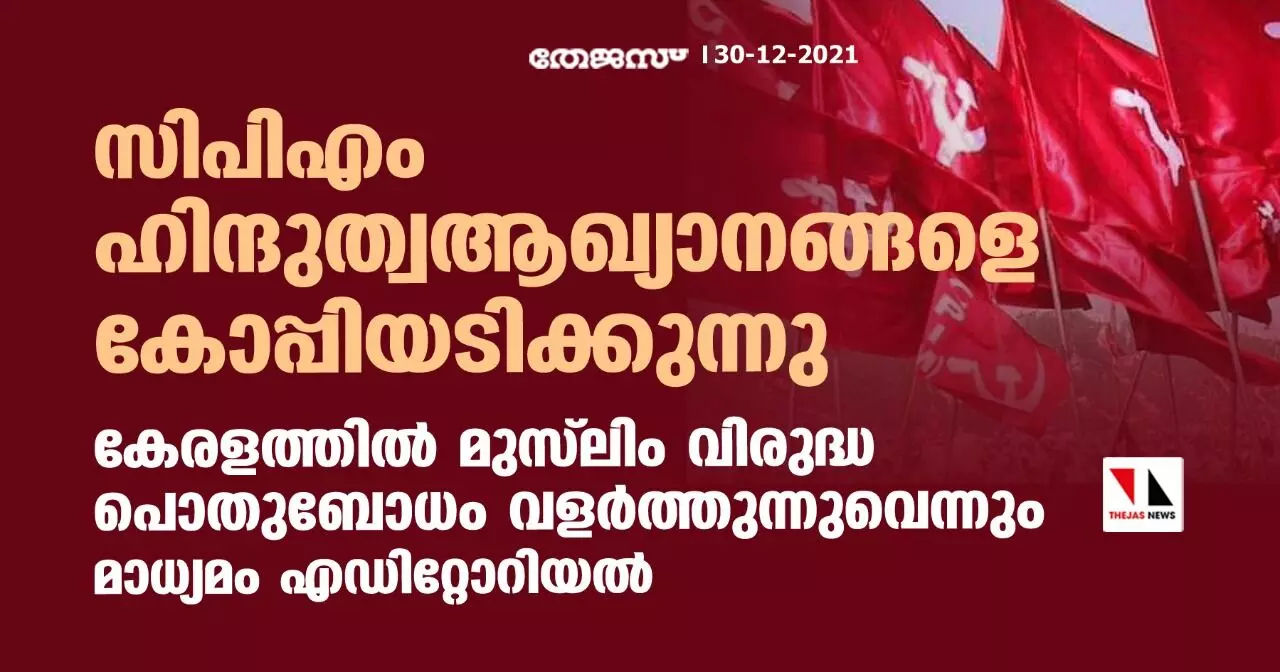 സിപിഎം ഹിന്ദുത്വ ആഖ്യാനങ്ങളെ കോപ്പിയടിക്കുന്നു; കേരളത്തില് മുസ്ലിം വിരുദ്ധ പൊതുബോധം വളര്ത്തുന്നുവെന്നും മാധ്യമം എഡിറ്റോറിയല്