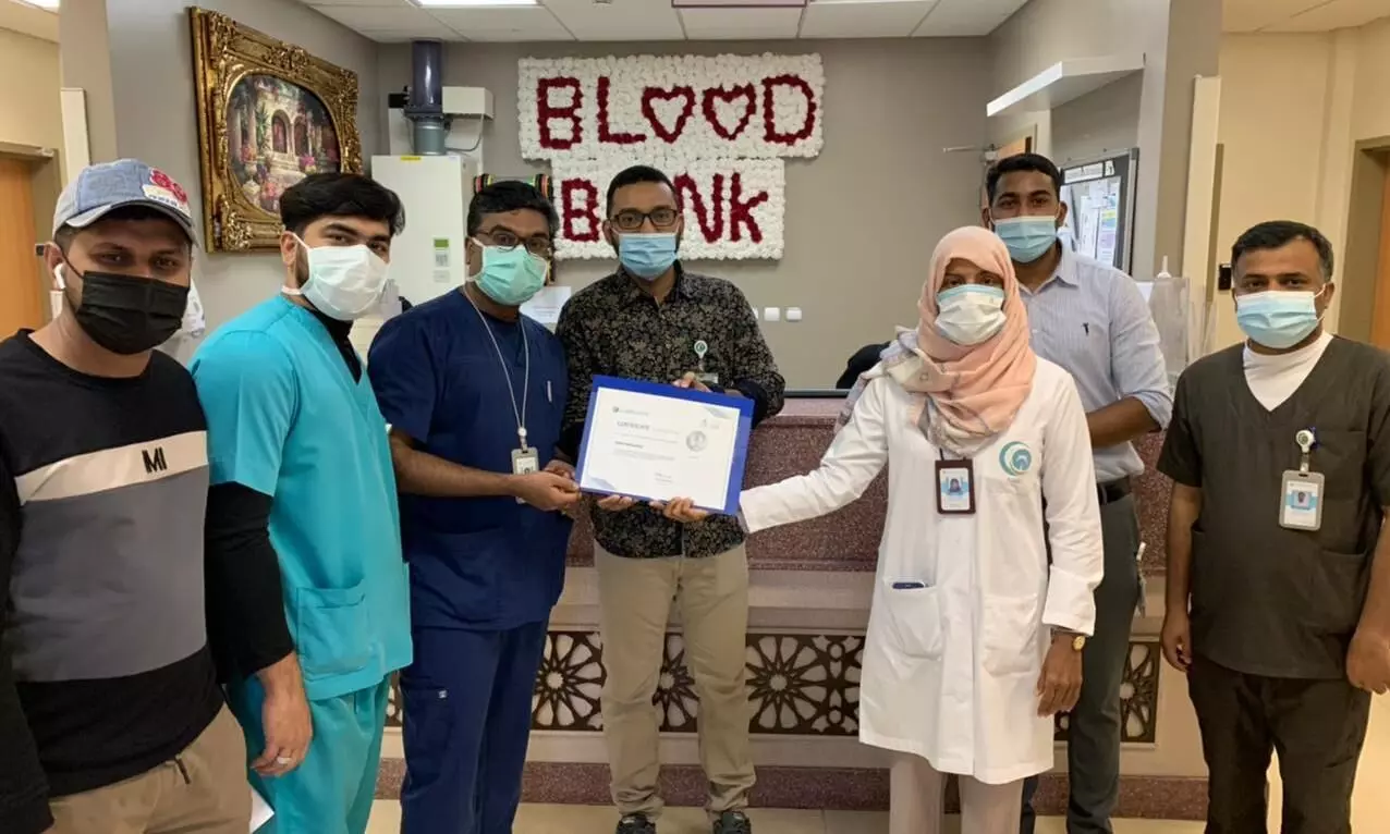 ജിദ്ദ: മക്കയിലെ കിംഗ് അബ്ദുല്ല മെഡിക്കല് സിറ്റി മലയാളീസ് കൂട്ടായ്മ പരിശുദ്ധ ഹജ്ജിനു മുന്നോടിയായി രക്തദാന ക്യാംപ് സംഘടിപ്പിച്ചു. കൊവിഡ് പ്രോട്ടോകോള് പാലിച്ചു നടന്ന പരിപാടി ബ്ലഡ് ബാങ്ക് സ്റ്റാഫ് ജംഷാദ് ഏകോപിപ്പിച്ചു. ബ്ലഡ് ബാങ്ക് ഡയറക്ടര് ഡോ ഹനാദി അല്ജദാനി സര്ട്ടിഫിക്കറ്റ് വിതരണം ചെയ്തു. കെ എ എം സി മലയാളീസ് പ്രസിഡന്റ് അദ്നാന്, ജനറല് സെക്രെട്ടറി സദക്കത്തുല്ല ,ഖജാന്ജി മുഹമ്മദ് ഷമീം ,വൈസ് പ്രസിഡന്റ് അബ്ദുല് ബാസിത് ,ജോയിന്റ് സെക്രെട്ടറിമാരായ ഷഫീക് ,ഷൌക്കത്ത് അലി ജോയിന്റ് ഖജാന്ജി ഫിറോസ് നേതൃത്വം നല്കി .