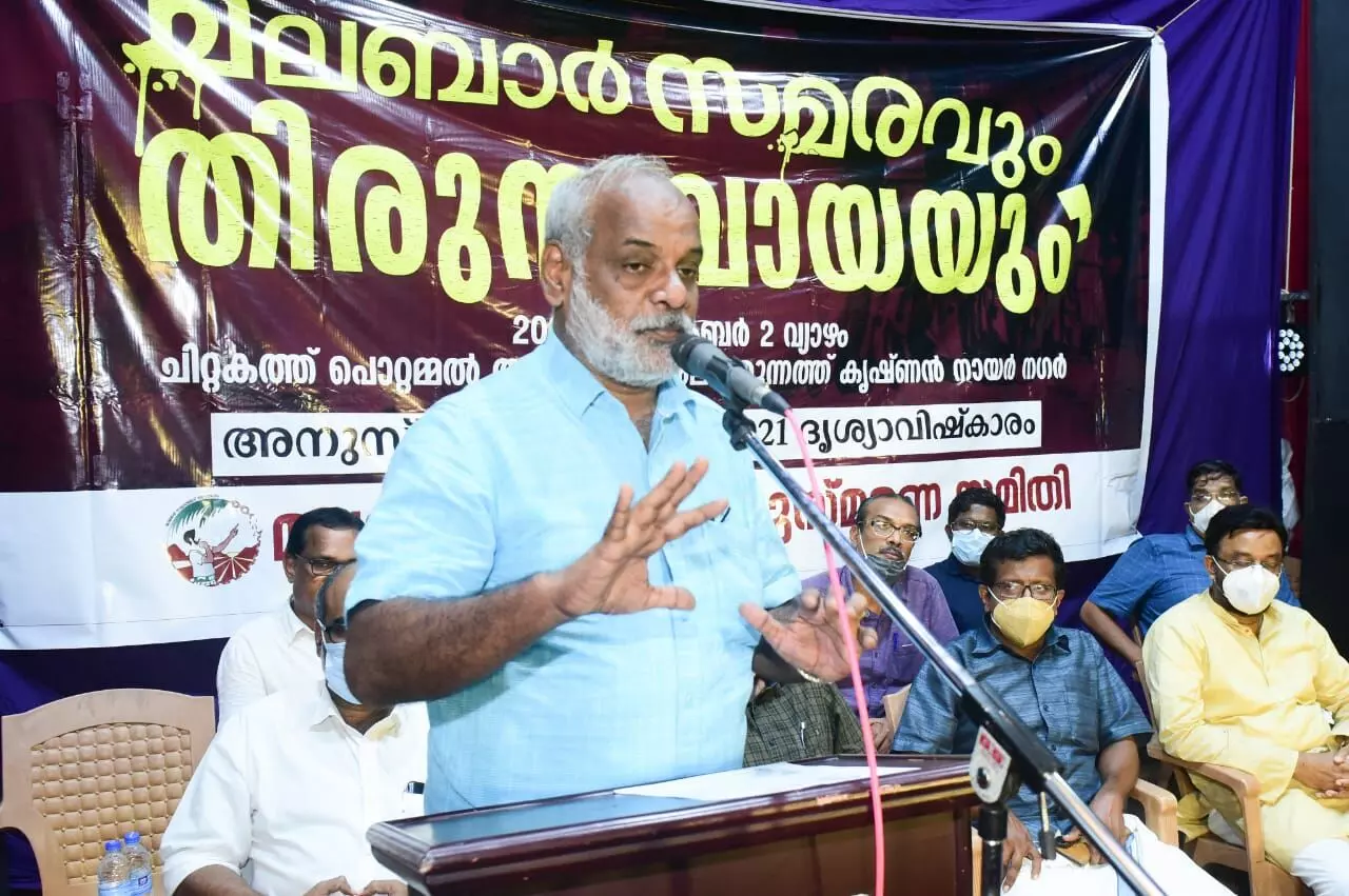 മലബാര് സമരം നൂറ്റാണ്ട് പിന്നിടുമ്പോഴാണ് സംഘപരിവാര് ശക്തികള് നുണപ്രചാരണവുമായി രംഗത്ത് വന്നിട്ടുള്ളത്.പൂക്കോട്ടൂര് യുദ്ധത്തെ കുറിച്ച് ആനി ബസന്റും ഡോ.അംബേദ്കറും തികച്ചും നുണക്കഥകളാണ് എഴുതി വച്ചിട്ടുള്ളത്. ഈ നുണക്കഥകള് സാക്ഷാല് മഹാത്മാഗാന്ധിയാണ് പ്രചരിപ്പിച്ചതെങ്കിലും താനടക്കമുള്ള പൗരന്മാര് തള്ളിക്കളയുമെന്ന് അദേഹം പറഞ്ഞു. പ്രമുഖ ചരിത്രകാരന് ഡോ.ഹുസൈന് രണ്ടത്താണി മുഖ്യ പ്രഭാഷണം നടത്തി. അവറാങ്കല് മുയ്തീന് കുട്ടി അധ്യക്ഷതവഹിച്ചു. പരിപാടിയോടനുബന്ധിച്ച് 1921 ദൃശ്യാവിഷ്ക്കാരം അരങ്ങേറി. ചിത്രകാരന് പ്രേംകുമാര്, കെപിഒ റഹ് മത്തുല്ല, സി അബ്ദുല് ഹമീദ്, ജില്ലാ പഞ്ചായത്തംഗം ഫൈസല് എടശ്ശേരി, ചിറക്കല് ഉമ്മര്, നാസര് കൊട്ടാരത്ത്, സി വി ഹംസ, കെ പി ഖമറുല് ഇസ്ലാം സംസാരിച്ചു.
