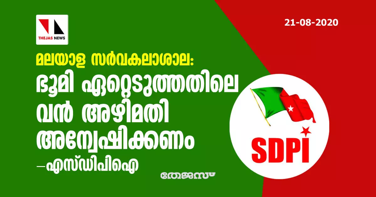 മലയാള സര്വകലാശാല : ഭൂമി ഏറ്റടുത്തതിലെ വന് അഴിമതി അന്വേഷിക്കണം :എസ്ഡിപിഐ