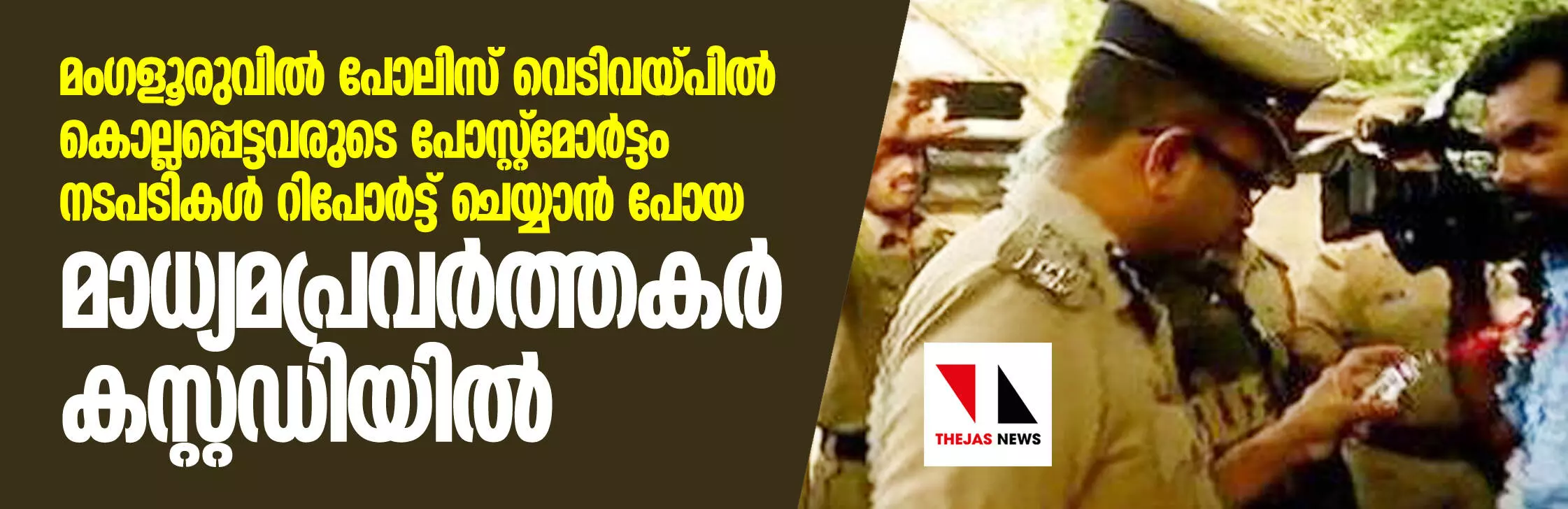 മംഗളൂരുവില് പോലിസ് വെടിവെപ്പില് കൊല്ലപ്പെട്ടവരുടെ പോസ്റ്റ്മോര്ട്ടം നടപടികള് റിപോര്ട്ട് ചെയ്യാന് പോയ മാധ്യമപ്രവര്ത്തകര് കസ്റ്റഡിയില്