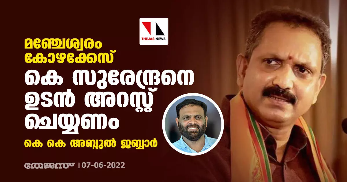 മഞ്ചേശ്വരം കോഴക്കേസ്: കെ സുരേന്ദ്രനെ ഉടന് അറസ്റ്റ് ചെയ്യണമെന്ന് കെകെ അബ്ദുല് ജബ്ബാര്