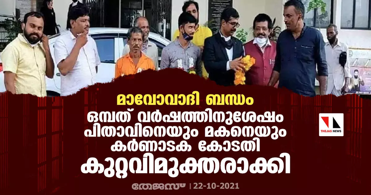 മാവോവാദി ബന്ധം: ഒമ്പത് വര്ഷത്തിനുശേഷം പിതാവിനെയും മകനെയും കര്ണാടക കോടതി കുറ്റവിമുക്തരാക്കി