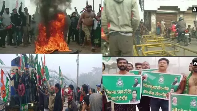 ഷര്ട്ട് പോലും ധരിക്കാതെയാണ് പ്രതിഷേധക്കാര് നിരത്തിലിറങ്ങിയിരിക്കുന്നത്. വൈശാലിയില് റോഡ് ട്രെയിന് ഗതാഗതം ആര്ജെഡി പ്രവര്ത്തകര് തടസ്സപ്പെടുത്തി. ഹൈവേകളില് പോത്തുകളെ അഴിച്ചുവിട്ട് ഗതാഗതം സ്തംഭിപ്പിച്ചു. ധര്ഭംഗയില് ടയറുകള് കൂട്ടിയിട്ട് കത്തിക്കുന്നുമുണ്ട്. റെയില്വേ ട്രാക്കുകളില് ഇരുന്നും ആര്ജെഡി പ്രവര്ത്തകര് പ്രതിഷേധിക്കുകയാണ്. പട്നയില് പ്രതിഷേധക്കാരെ നേരിടാന് പോലിസ് വച്ചിരുന്ന ബാരിക്കേഡും ഇവര് തകര്ത്തു.