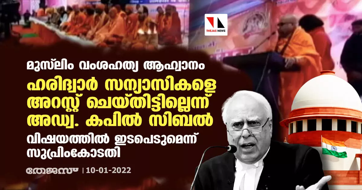ന്യൂഡൽഹി: ഹരിദ്വാറിലെ ധരം സൻസദ് സന്യാസി സമ്മേളനത്തിൽ മുസ്ലിം സമുദായത്തിനെതിരെ നടത്തിയ വംശഹത്യാ ആഹ്വാനത്തിൽ ക്രിമിനൽ നടപടി സ്വീകരിക്കണമെന്ന് ആവശ്യപ്പെട്ടുള്ള ഹരജികൾ പരിശോധിക്കുമെന്ന് സുപ്രിംകോടതി. മുതിർന്ന അഭിഭാഷകൻ കപിൽ സിബലിന്റെ ഇടപെടലിനെ തുടർന്നാണ് വിഷയത്തിൽ ഇടപെടാമെന്ന് സുപ്രിംകോടതി തിങ്കളാഴ്ച സമ്മതിച്ചത്. ചീഫ് ജസ്റ്റിസ് എൻ വി രമണ അധ്യക്ഷനായ ബെഞ്ചിനു മുമ്പാകെയാണ് അടിയന്തര ഇടപെടൽ ആവശ്യപ്പെട്ട് കപിൽ സിബൽ വിഷയം ഉന്നയിച്ചത്.