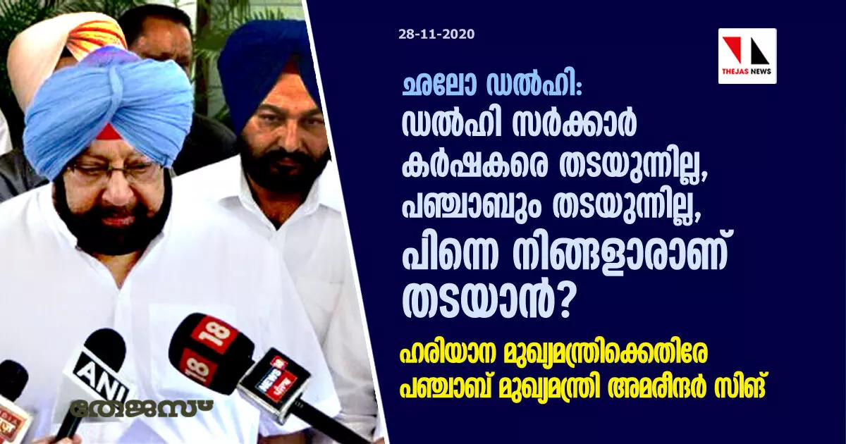 ഛലോ ഡല്ഹി: ഡല്ഹി സര്ക്കാര് കര്ഷകരെ തടയുന്നില്ല, പഞ്ചാബും തടയുന്നില്ല, പിന്നെ നിങ്ങളാരാണ് തടയാന്?: ഹരിയാന മുഖ്യമന്ത്രിക്കെതിരേ പഞ്ചാബ് മുഖ്യമന്ത്രി