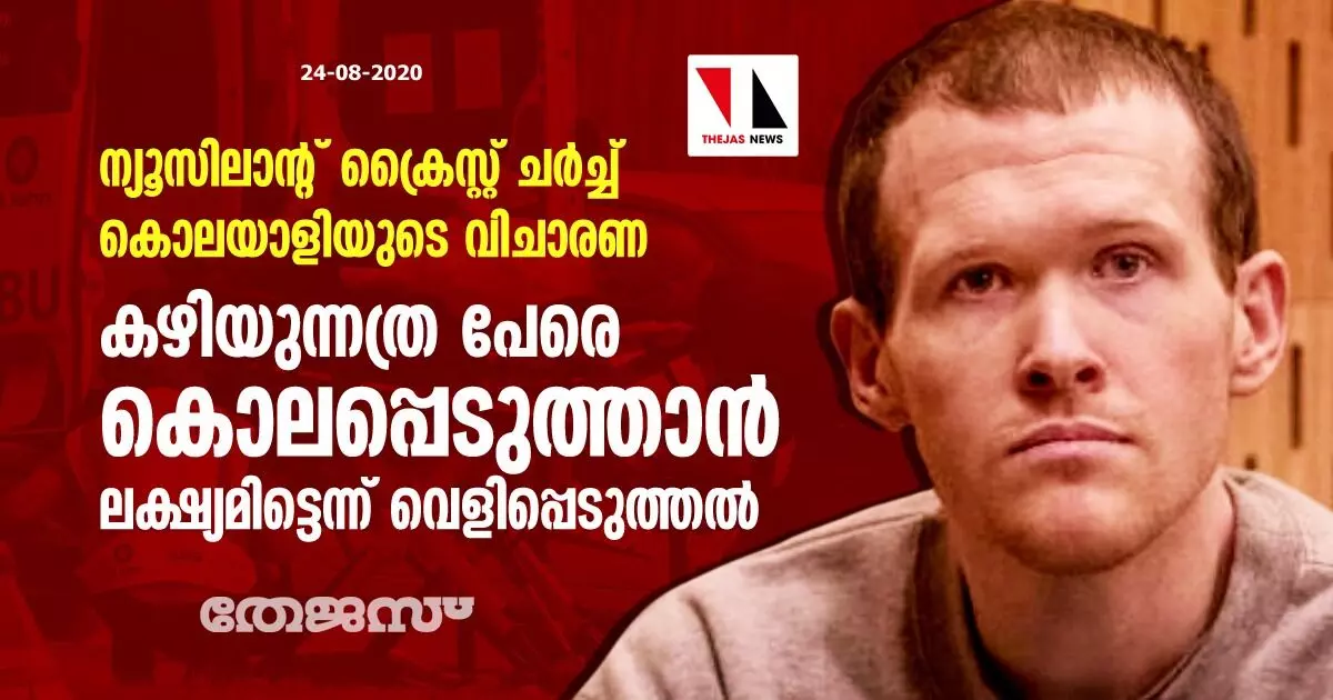 ന്യൂസിലാന്റ് ക്രൈസ്റ്റ് ചര്ച്ച് കൊലയാളിയുടെ വിചാരണ: കഴിയുന്നത്ര പേരെ കൊലപ്പെടുത്താന് ലക്ഷ്യമിട്ടെന്ന് വെളിപ്പെടുത്തല്