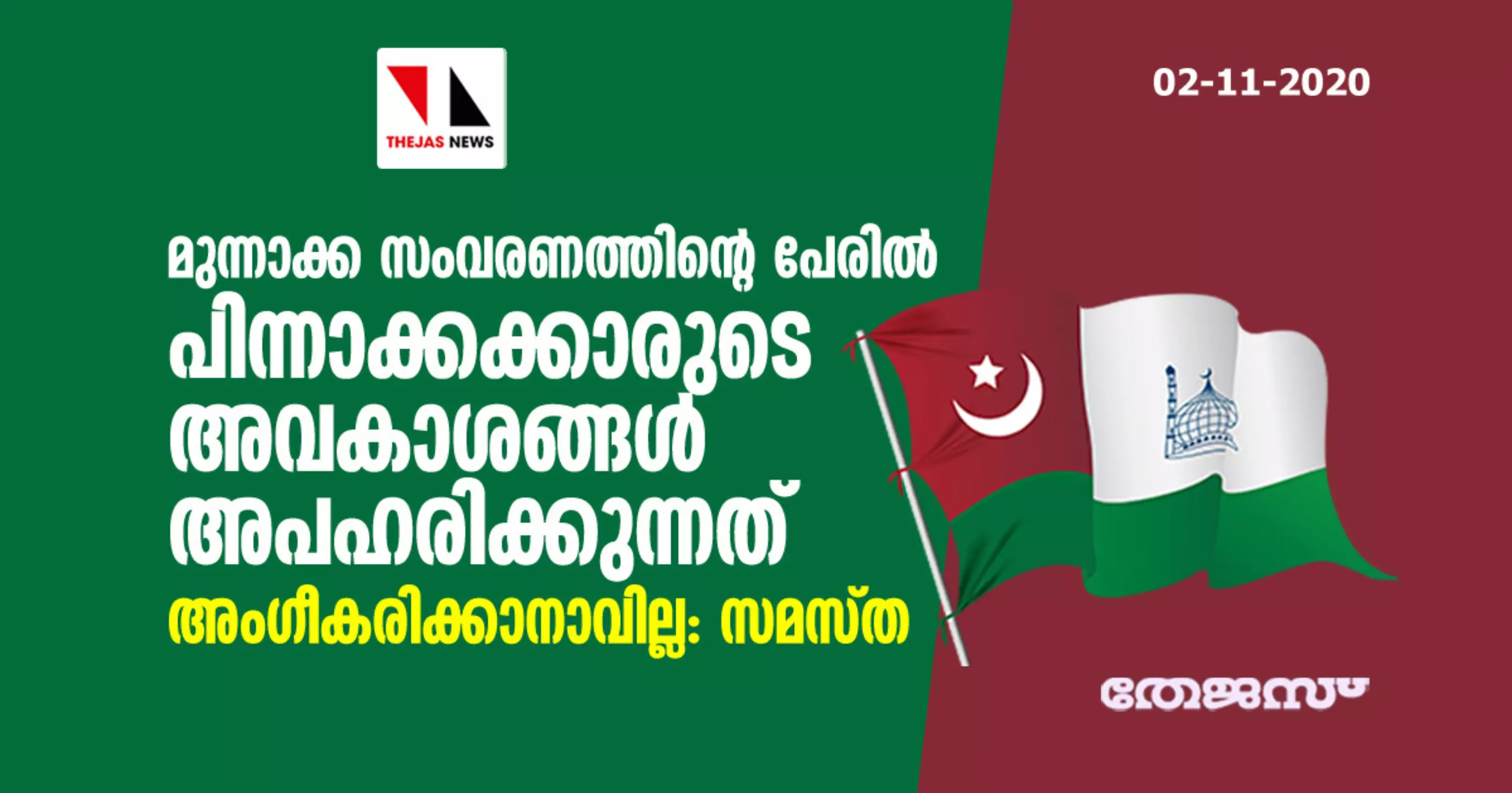 മുന്നാക്ക സംവരണത്തിന്റെ പേരില് പിന്നാക്കക്കാരുടെ അവകാശങ്ങള് അപഹരിക്കുന്നത് അംഗീകരിക്കാനാവില്ല: സമസ്ത