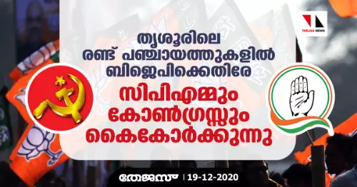 തൃശൂരിലെ രണ്ട് പഞ്ചായത്തുകളില് ബിജെപിക്കെതിരേ സിപിഎമ്മും കോണ്ഗ്രസ്സും കൈകോര്ക്കുന്നു