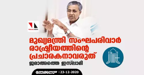 മുഖ്യമന്ത്രി സംഘപരിവാര് രാഷ്ട്രീയത്തിന്റെ പ്രചാരകനാവരുത്: ജമാഅത്തെ ഇസ്ലാമി
